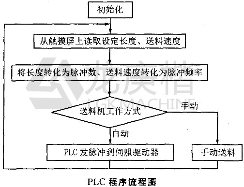 PLC是NC送料機核心組成,龍庚楷NC送料機標配三菱PLC,其內置高速脈沖輸出功能,可以直接發出定量的脈沖數控制伺服驅動器運行。伺服驅動器根據PLC脈沖輸出端發出脈沖的個數、頻道來控制伺服馬達的轉動位置及速度,從而精確地給出送料長度。觸摸屏可以直觀顯示及個性系統各種參數,為用戶提供了良好的人機交互界面,簡化了現場操作。